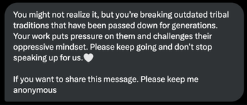 After I shared a short, seven-second video of that moment that has at least 24 million views, I received hundreds of messages from women around the world. They told their stories — bravely, honestly, painfully. Their words speak louder and more powerfully than I ever could.