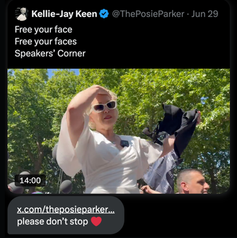 "My name is Kellie-Jay Keen. This is an act of solidarity with all of the women who have written to me who have to live behind the veil. Because their husbands, their cousins, their brothers are too weak to enable those women to be free.